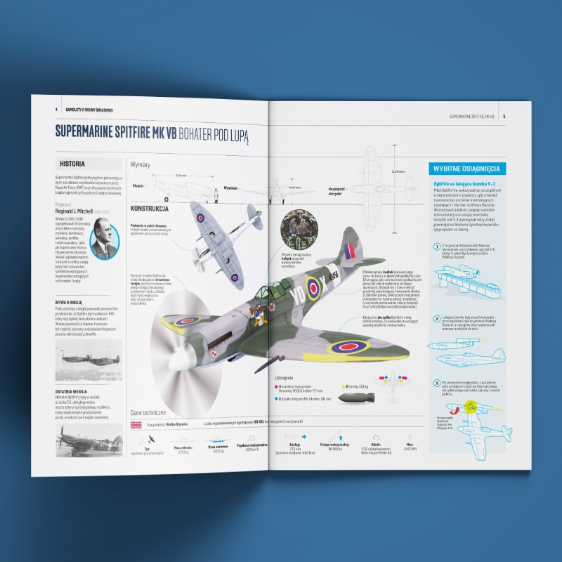 Wydanie kolekcjonerskie. W każdym tomie najpełniejsze i najdokładniejsze informacje o ikonicznych samolotach i legendarnych pilotach oraz szczegółowo odwzorowane modele z zachowaniem oryginalnego malowania i oznaczeń.